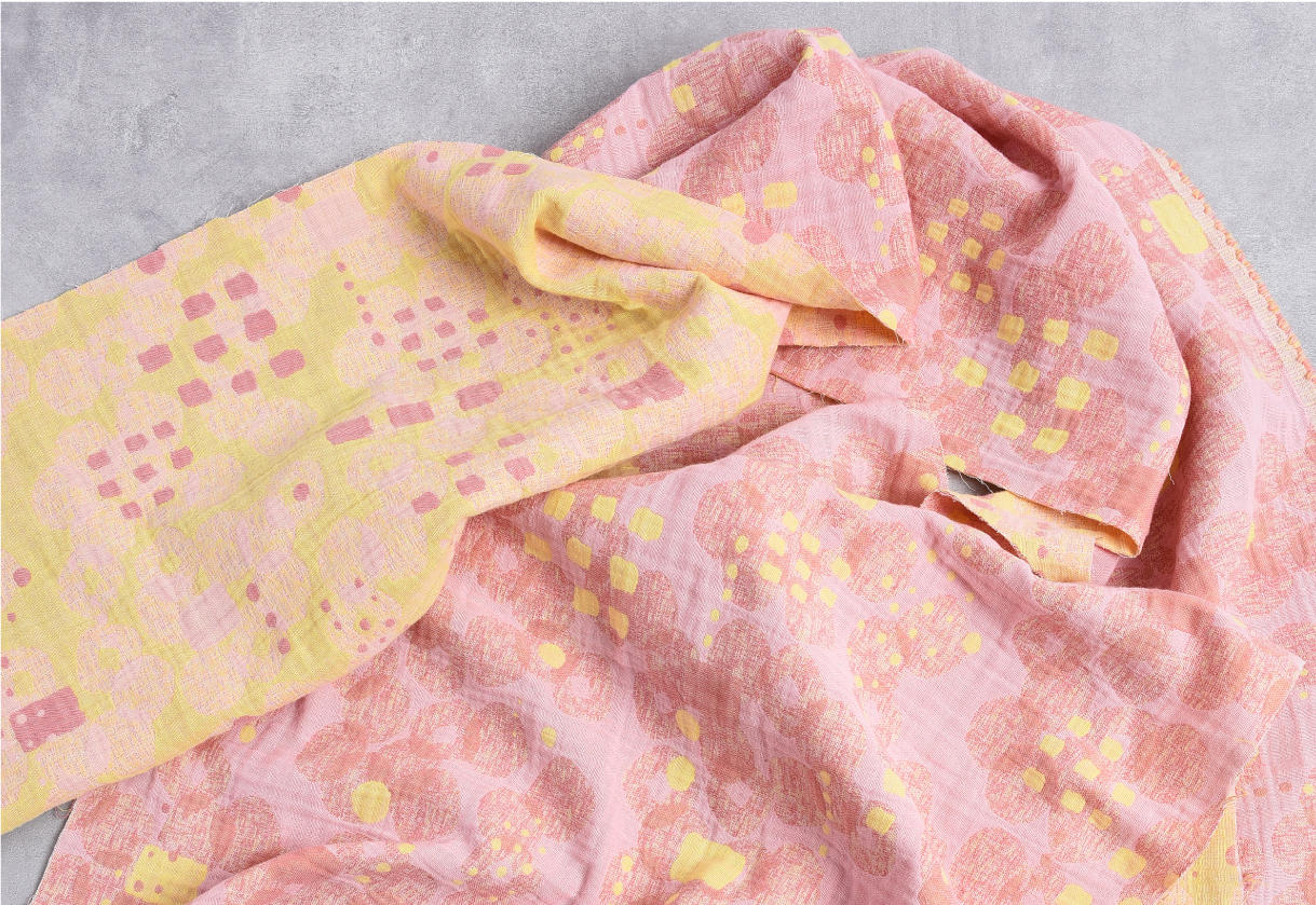 約105cmの扱いやすい生地巾は、衣類からリビング雑貨まで多彩なアイテムに対応できる柔軟性をもち、オリジナル柄の企画・制作も可能です。※反物での納品になります。